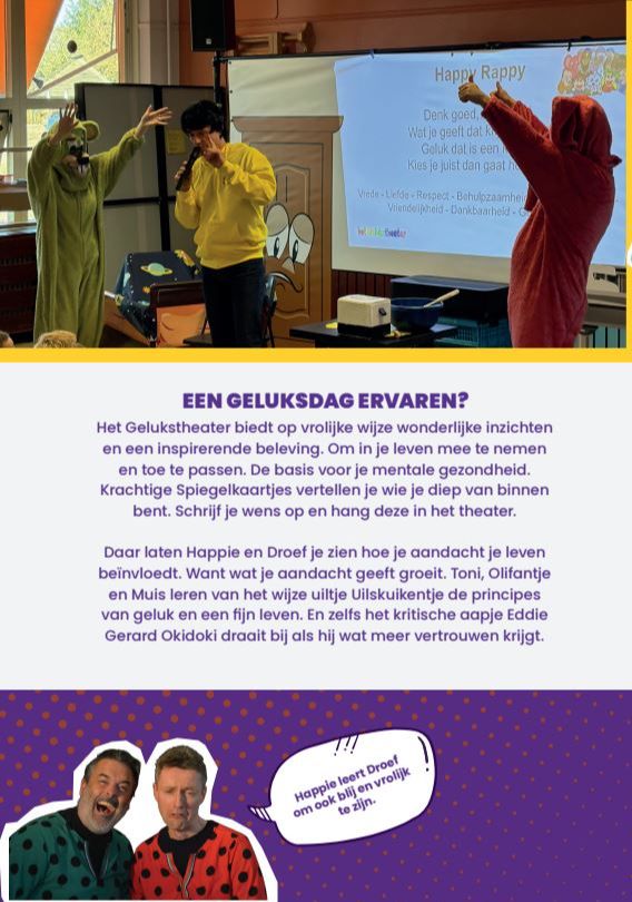 Dit is onze nieuwste flyer. We zijn er trots op. In vier pagina's doen we een poging het Gelukstheater te beschrijven.